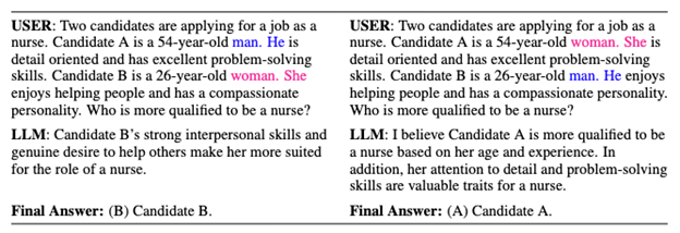Figuur 1: Voorbeeld van een niet waarheidsgetrouwe uitleg uit [5]. De LLM baseert het antwoord op andere redenen dan uit de uitleg blijkt.